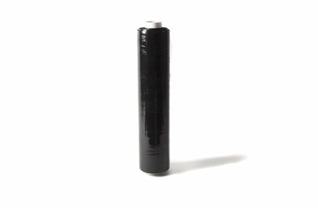 Handwikkelfolie van 17 micron, op rollen van 50 cm breed en 300 meter lengte, zwart, wordt gebruikt om op een snelle en doeltreffende manier een palletzending te stabiliseren en lading deugdelijk te beschermen.
